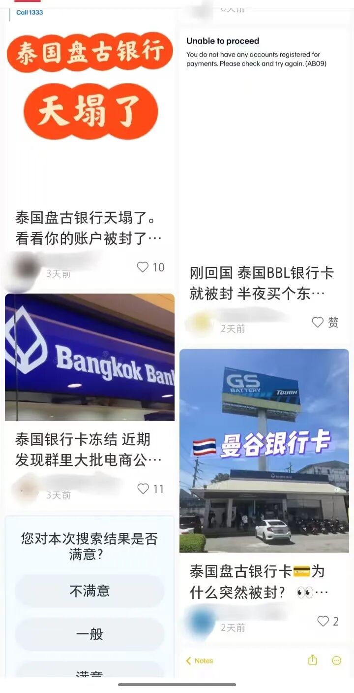 小红书上有网友提到:“目前泰国全国各地的曼谷银行已暂停所有外籍客户(不仅限于中国人)的银行业务办理”。