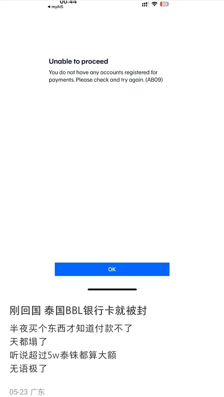 有网友表示:“自己刚从泰国回中国,半夜刷卡买东西付不了款的时候才发现泰国BBL银行卡被封了,她还听说现在超过5W泰铢(约1.1万人民币、1974新币)就算是大额了…”