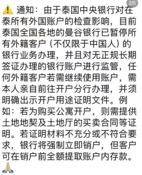 未来将会有大批可疑账户、电诈潜在账户被封停,外国人在泰开户审查程序也将被收紧,难度将会直线飙升!