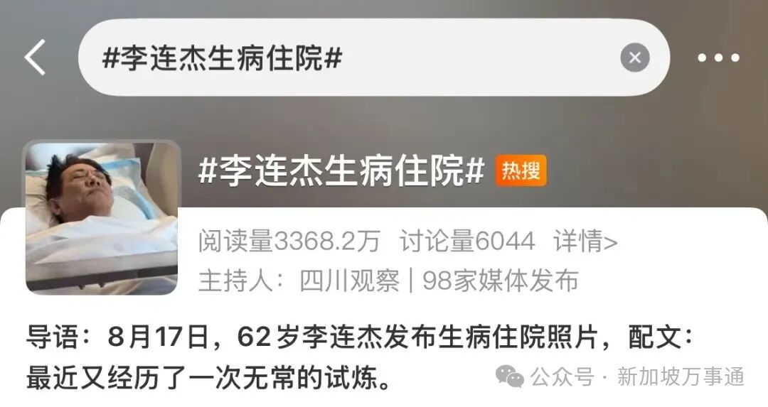 近日,新加坡籍国际巨星李连杰再次被疯传死讯,甚至挂到了微博热搜。
