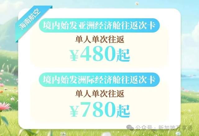 海南航空时隔1年后重回次卡促销,推出单人往返机票卡。
