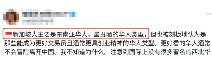 网友称:众所周知,新加坡超七成人口是华人,而这些华族大多是中国东南沿海汉族的后裔,基因的原因注定了他们成为最丑的华人类型。