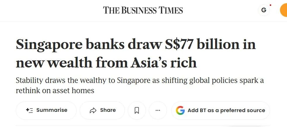 新加坡吸引大量亚洲富豪和全球资本流入并非偶然。这里政治稳定、金融监管透明、税务结构友好,吸引大量跨国财富选择在这里布局管理。近期新加坡三大银行吸引了数千亿新资产流入,说明金融中心正在强化其财富管理功能。