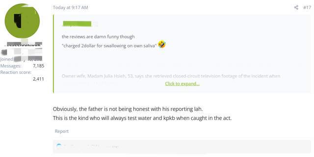 根据这位网友阿黄发的帖子所称,星期天他带着两个孩子去芽笼路的粤菜餐馆用餐。