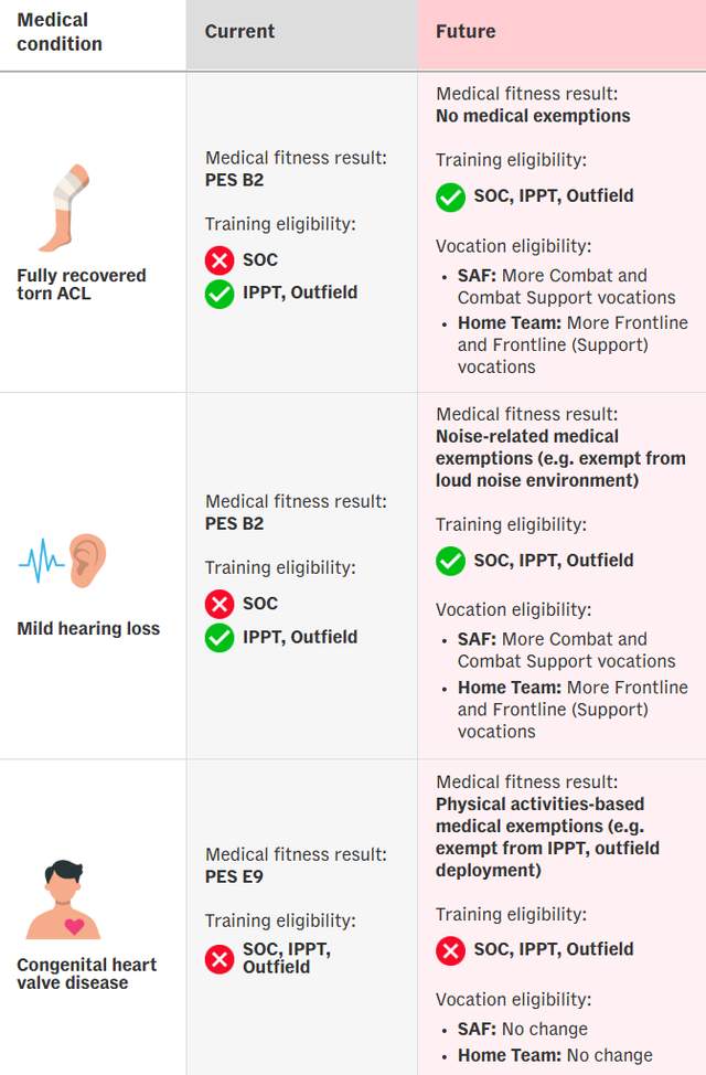 这套新制度将分阶段落实:2026年中开始体检时,就会用新标准评估;2027年10月起适用于新加坡武装部队新兵;2027年11月起,扩展到警察和民防部队。