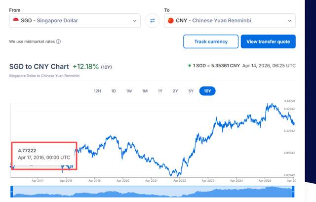 其实这两年,新币兑人民币汇率涨的已经很不错了,要知道前几年还是1:4+呢