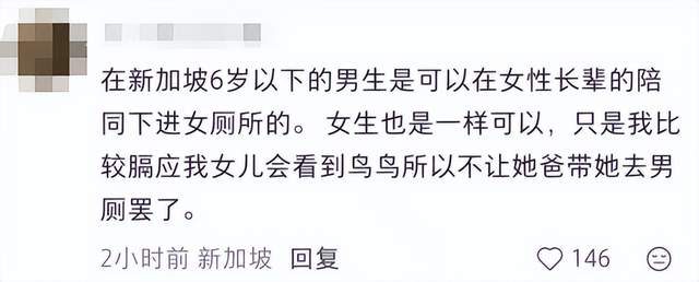 然而真正的原因是:“在新加坡6岁以下的男孩是可以在女性长辈的陪同下进女厕所的。6岁以下的女孩同样也可以进男厕。”