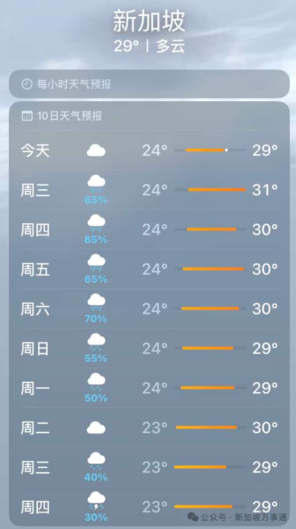 万事通看了下天气预报,基本上这一周都有雨,新加坡正式进入雨季!