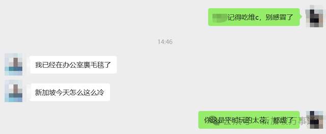 但万事通去哈尔滨玩,是里3层外3层,最后再套个军大衣的。在新加坡,可是真的背心裤衩+人字拖!
