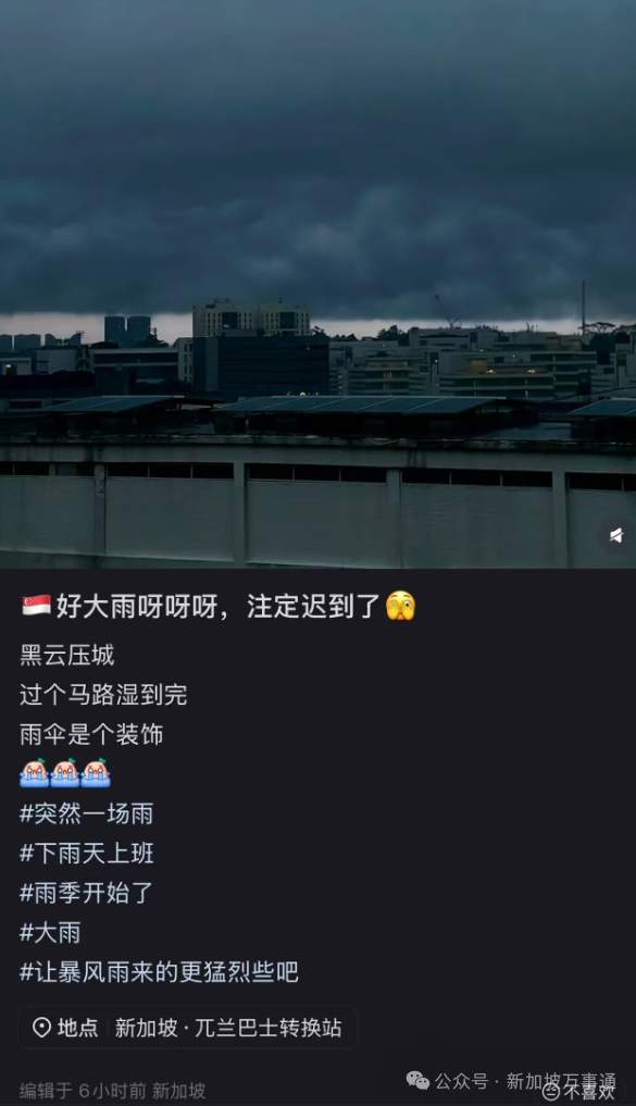 新加坡今早黑云压城,又下起了暴雨,想必不少“牛马”都迟到了吧?
