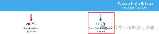 蔡厝港甚至低至22度,不少网友调侃:今天全岛开了免费的空调。