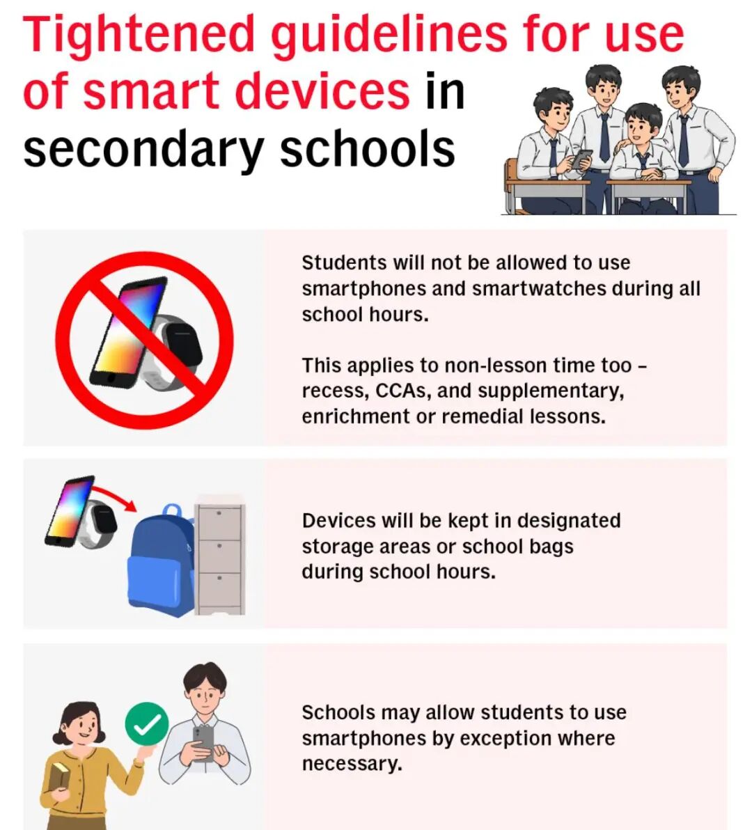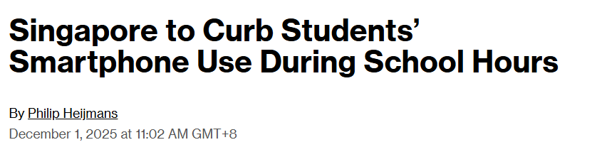 11月30日,新加坡教育部发布声明表示:“2026年起,手机、智能手表等设备在校期间必须锁在柜子/书包内,除非确有特殊情况得到老师特批。”