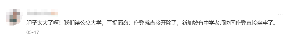 有新加坡网友表示:“有个中学老师协助学生作弊直接被判坐牢!”