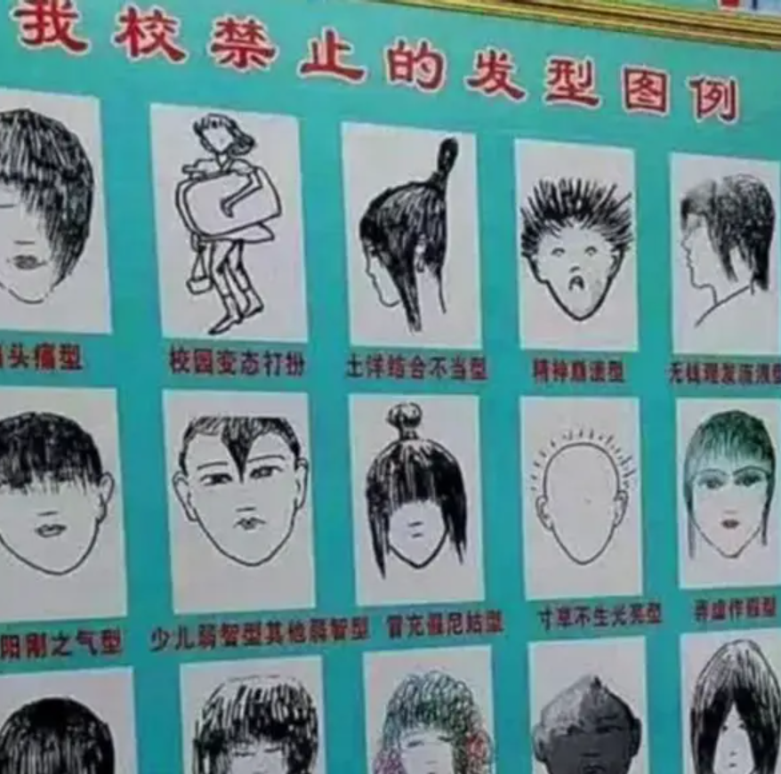 女生留长发必须扎成辫子、刘海不可超过眉毛、不可染发、用发胶产品,就连梳理头发用的发卡、橡皮筋的颜色都有明确规定。如果是短发,头发长度不可触碰到校服衣领。