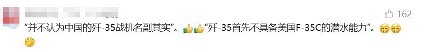 有网友以2022年1月美国海军F-35C战机在“卡尔·文森”号航母降落时发生坠海事故为例,嘲讽称:“歼-35首先不具备美国F-35C的潜水能力”。