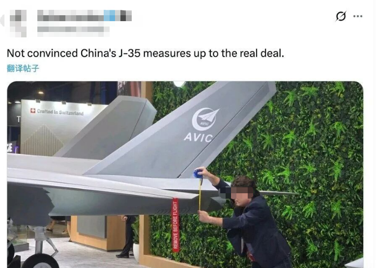 他还配文称:“并不认为中国的歼-35战机名副其实”。