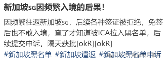 虽然新加坡移民局没有明确规定“频繁出入境会被拒”,但根据网友们的真实经历,出现以下这几种情况要提高警惕: